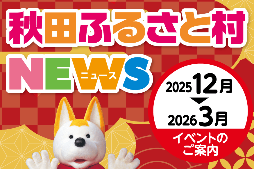 秋田ふるさと村では2026年2月21日(土)、22日(日)、23日(月祝)の3日間、 正面入口ふるさと広場および工芸展示館前通路(どちらも屋内会場)にて、 「パン&スイーツフェア」を開催いたします。 それにともない、出店 […]